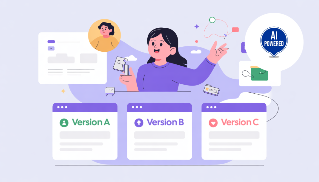 - Pruebas A/B sin esfuerzo: Tres versiones compiten simultáneamente. Tú solo inyectas tráfico (Google Ads, Meta, etc.) y la IA hace el resto.